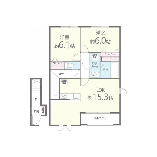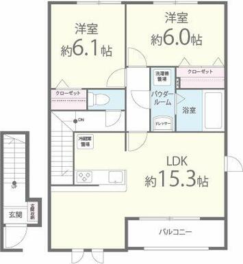 2LDK(洋室6畳/洋室6.1畳/LDK15.3畳) |